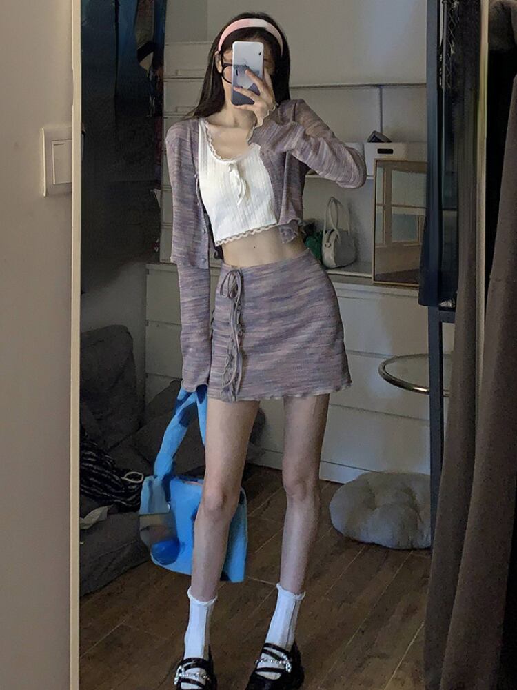 ショート ロング レース 長袖 カーディガン オータム 秋物 スカート ソリッドカラー WWJULY84695490787