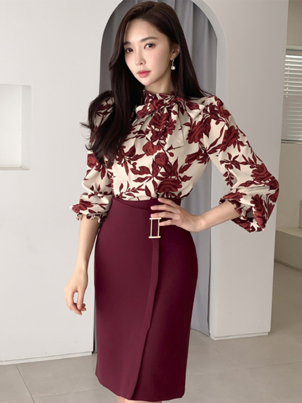 ブラウス 花柄 スカート スリム MingJieBiHuo50154500924