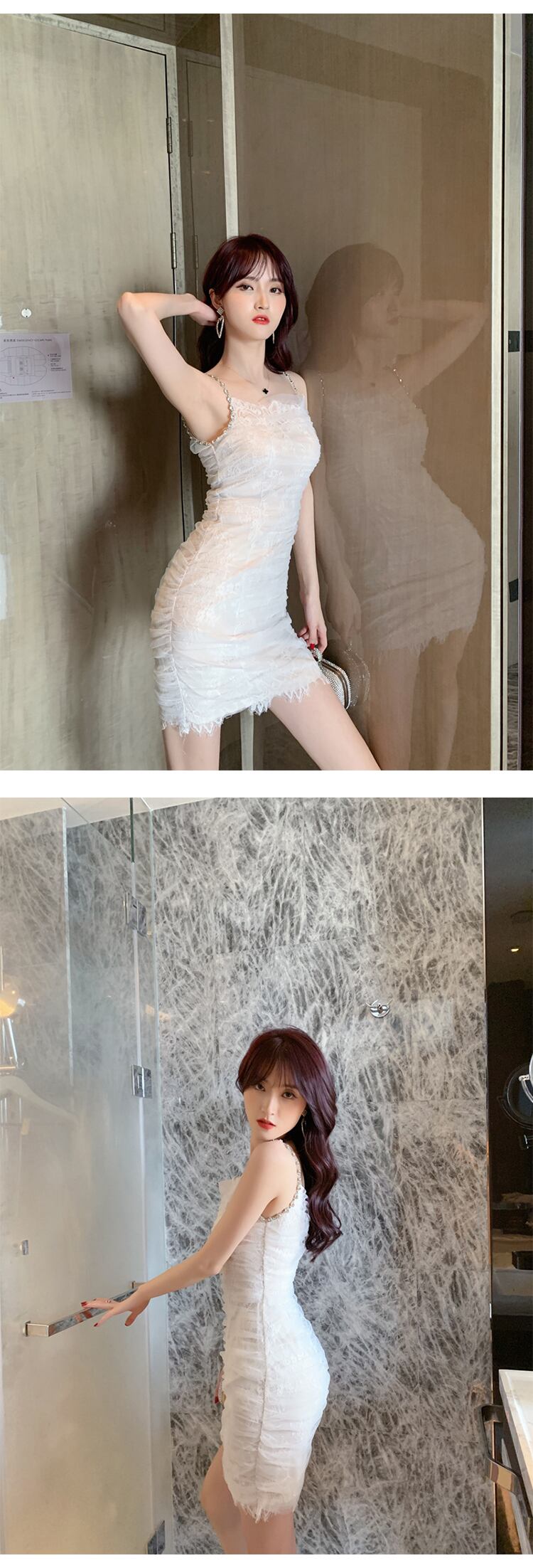 ミニ シフォン レース エレガント サマー 夏物 ビーチ スリム パール 真珠 MingJieBiHuo65104746454