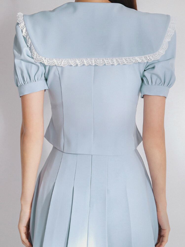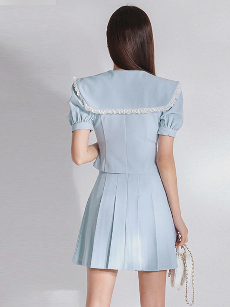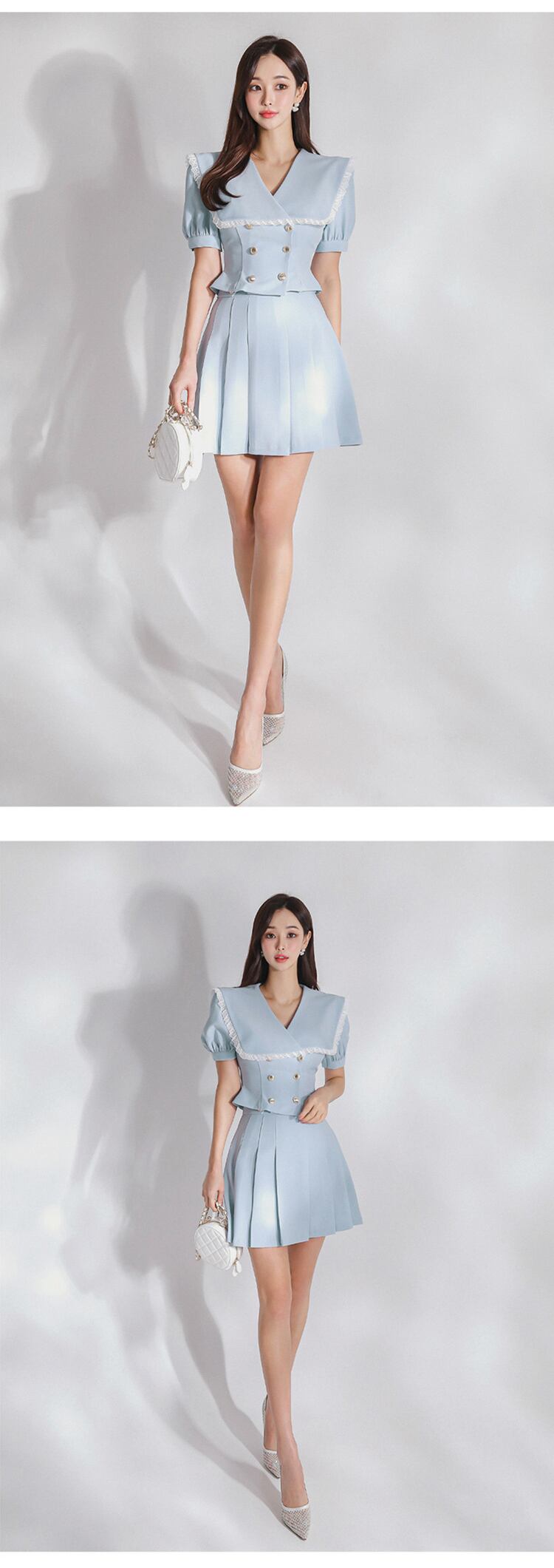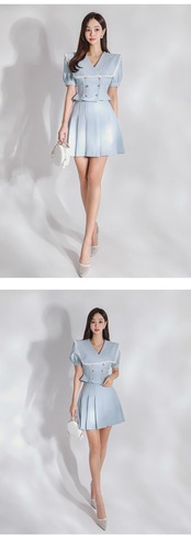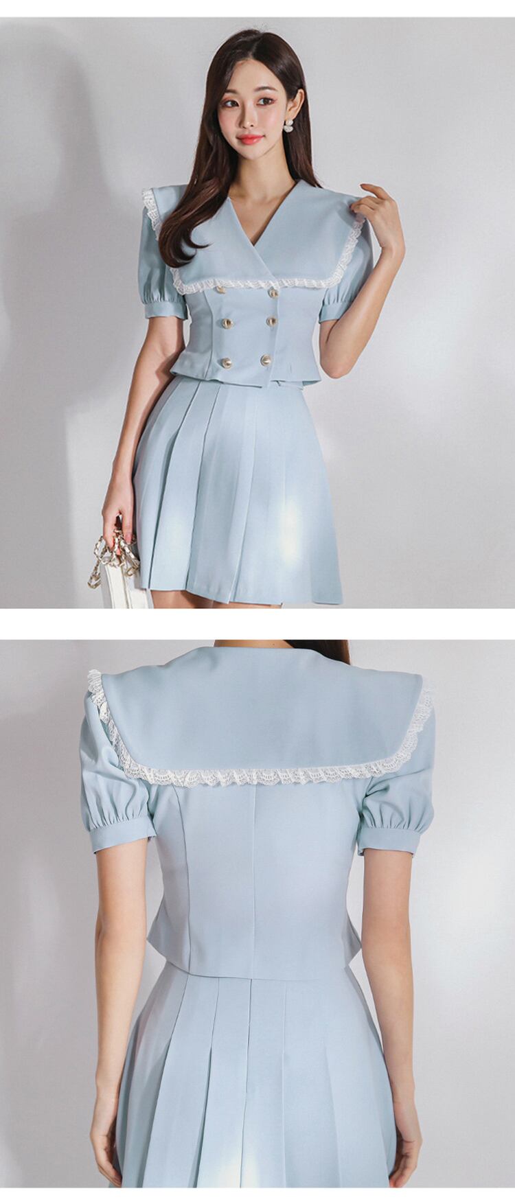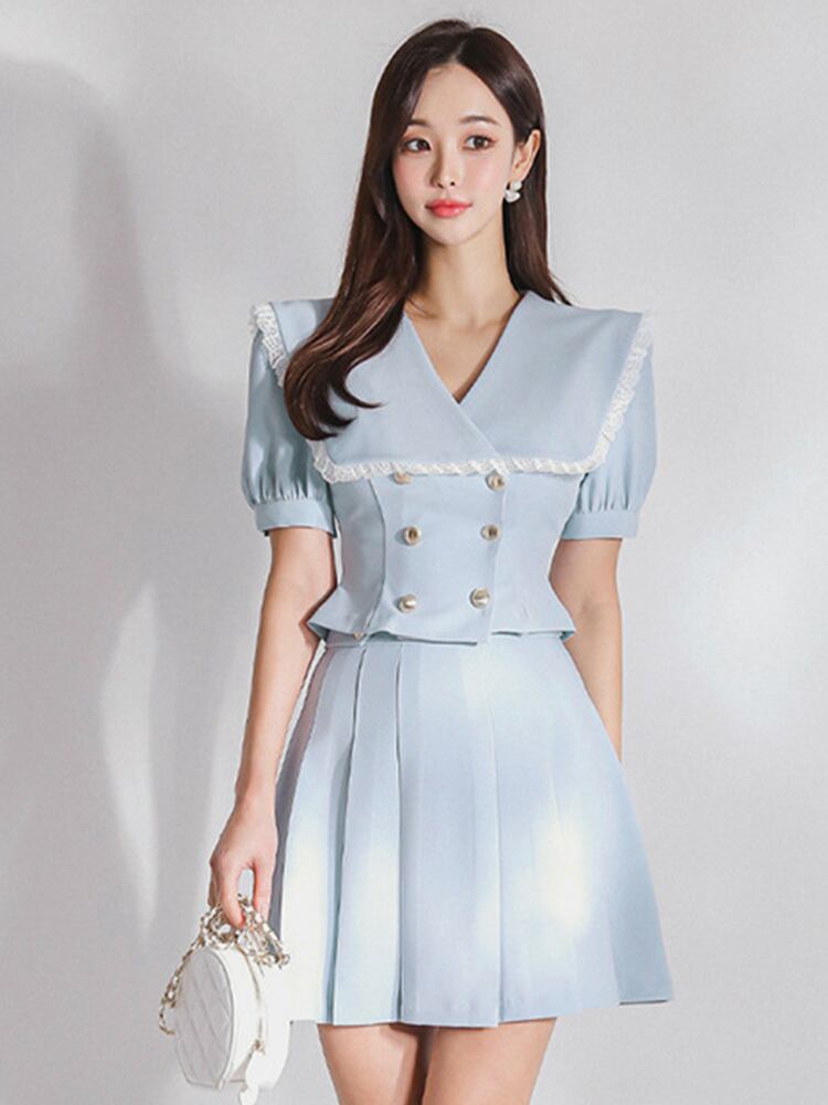 ショート ミニ レトロ ブラウス プリーツ サマー 夏物 スカート 会社 学校 通勤や通学にも MingJieBiHuo5713180919