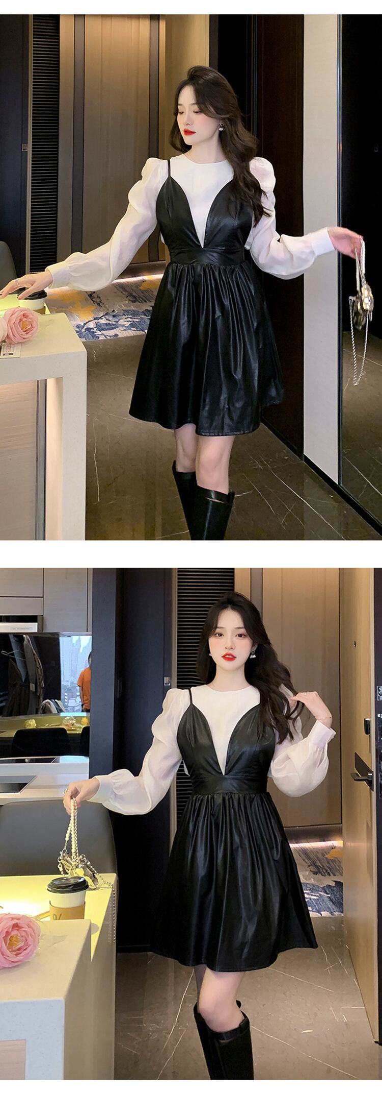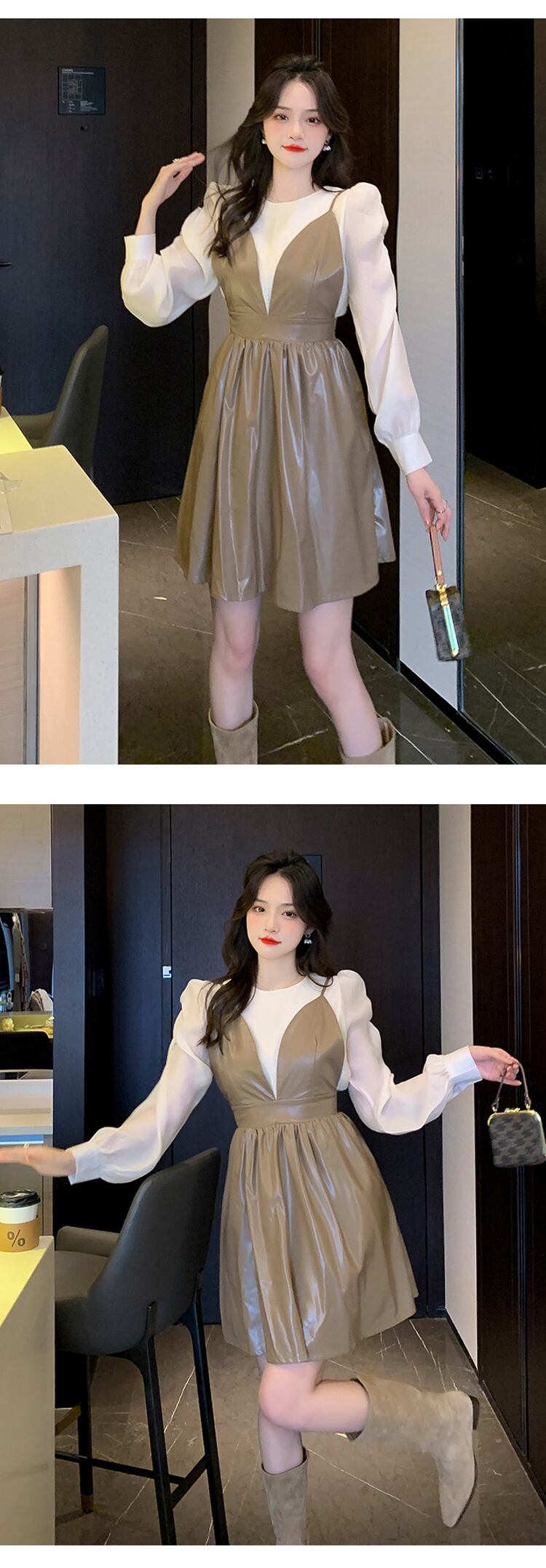 ロング ミニ 長袖 ブラウス スプリング 春物 オータム 秋物 ドレス レザー MingJieBiHuo23434100426