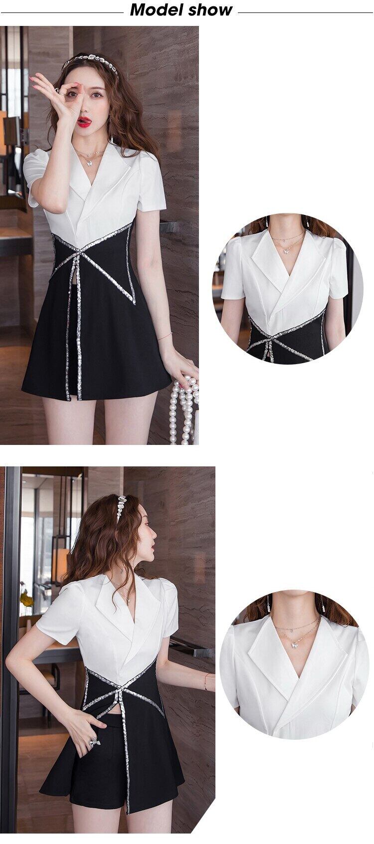ショート ホワイト ブラック 半袖 ハーフスリーブ ブラウス ショーツ ブルマー ビンテージ MingJieBiHuo1980146738