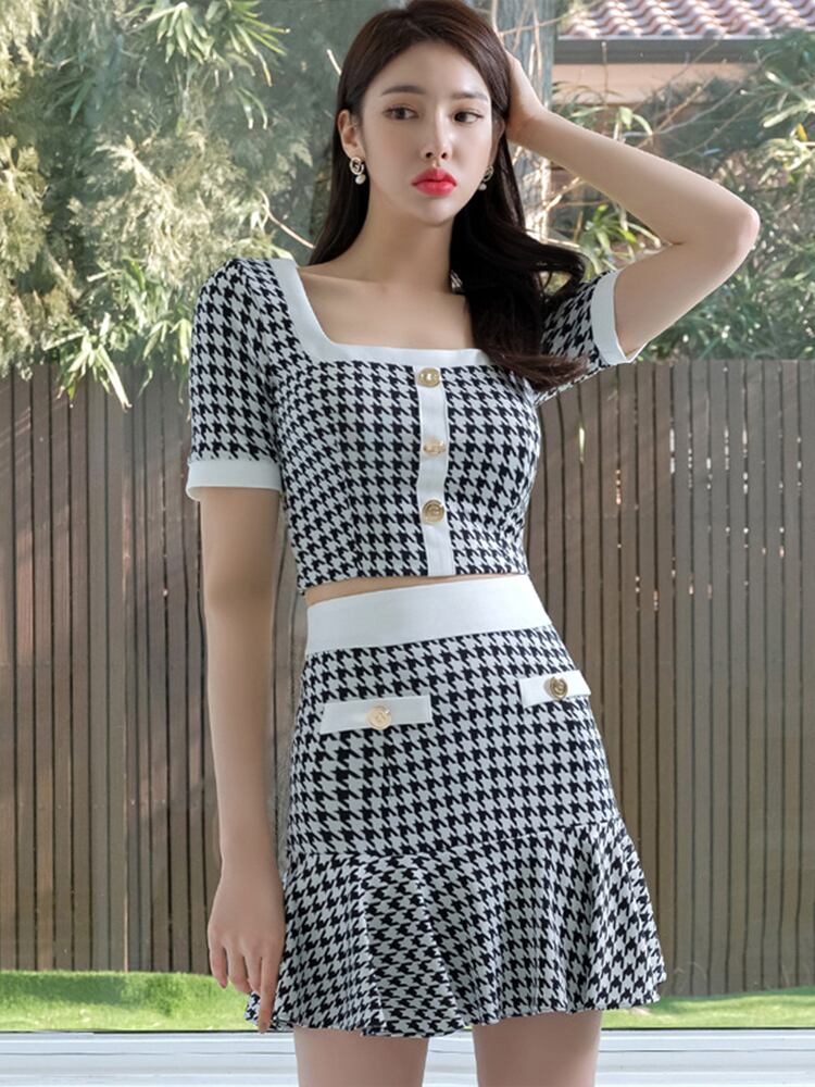 ショート ミニ レトロ ブラウス サマー 夏物 スカート スリム スクウェア MingJieBiHuo83189366061