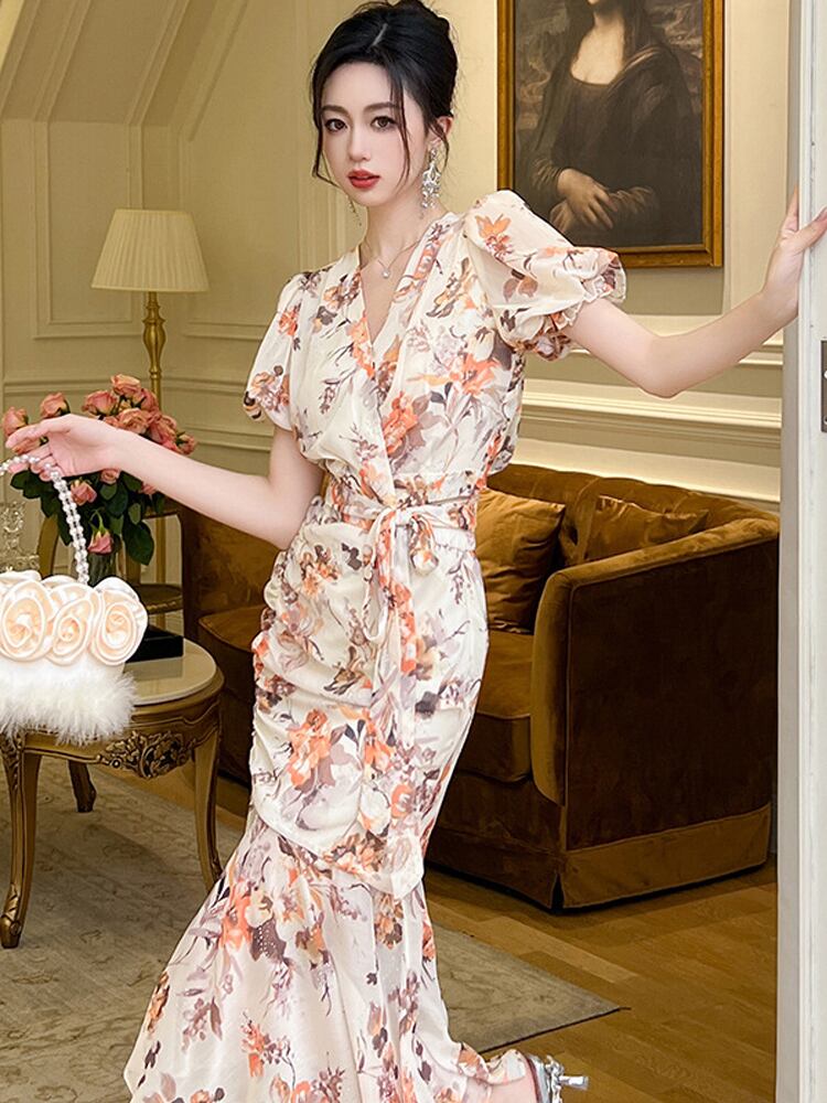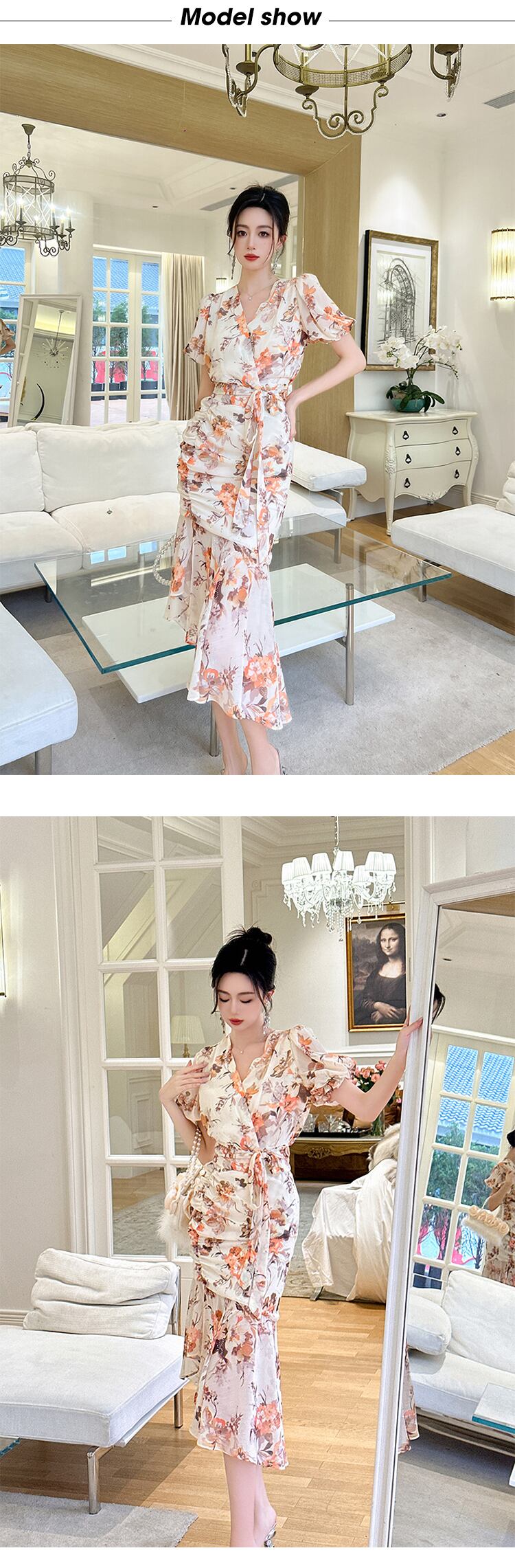 ショート シフォン ブラウス サマー 夏物 花柄 スカート MingJieBiHuo32894486886