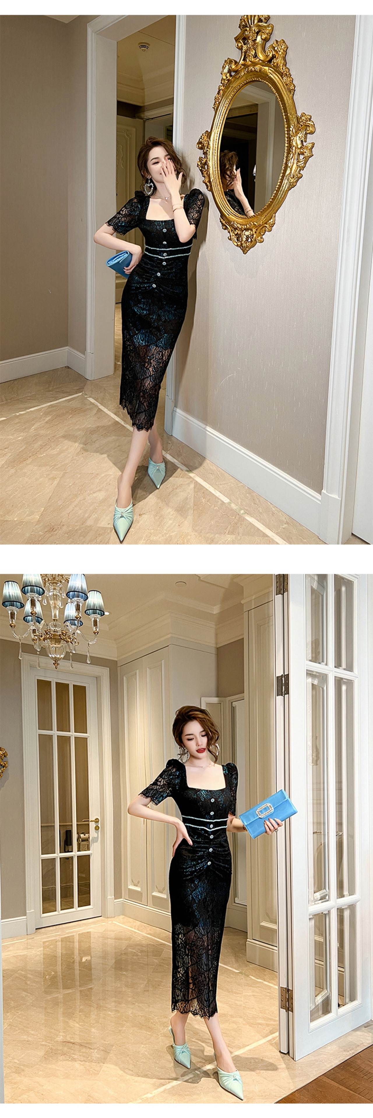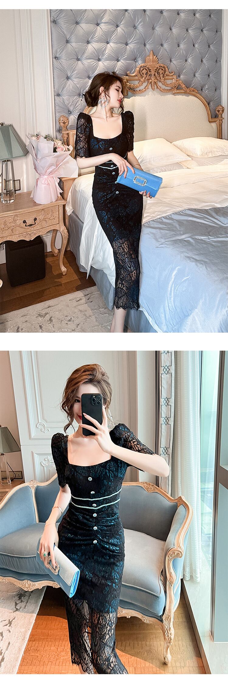 レース サマー 夏物 ドレス スリム シルク スクウェア ビンテージ MingJieBiHuo45318106230