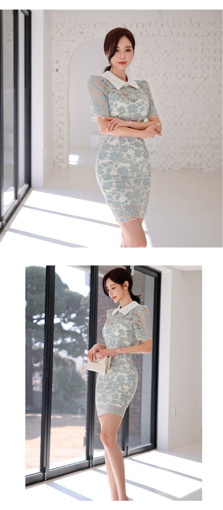 ショート ミニ レトロ レース 半袖 ハーフスリーブ サマー 夏物 ドレス スリム MingJieBiHuo50761500820