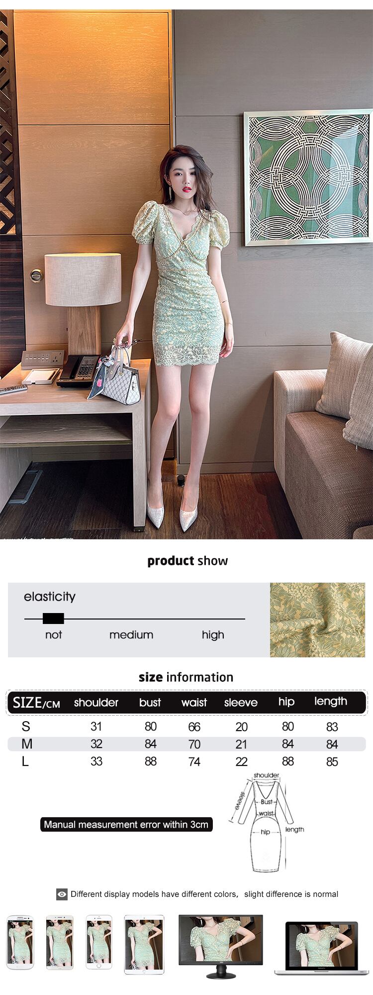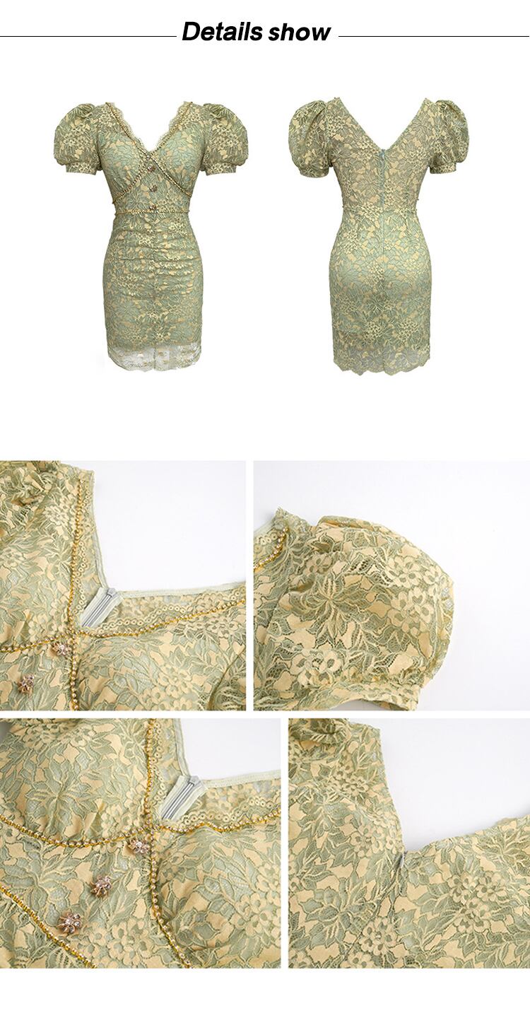 ショート ミニ レース 半袖 ハーフスリーブ 花柄 Vネック スリム MingJieBiHuo57545676607