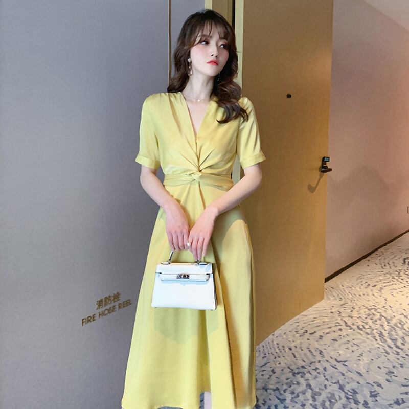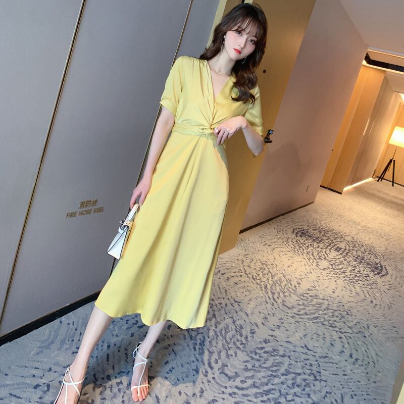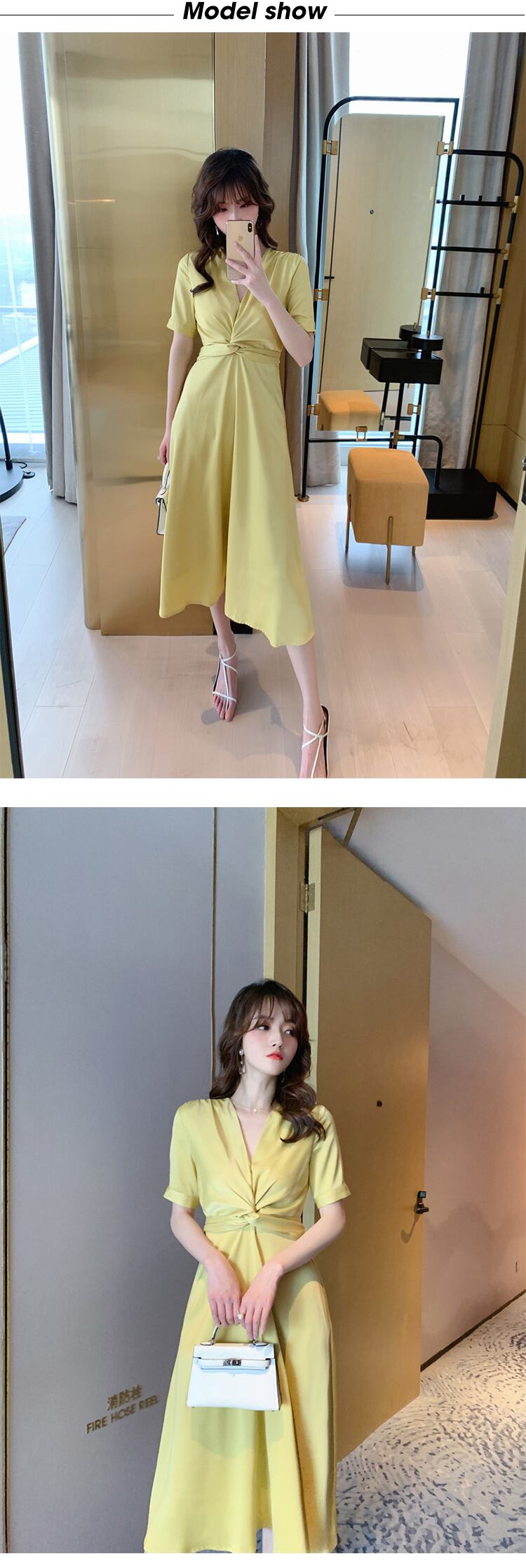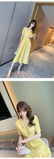 エレガント サマー 夏物 Aライン ソリッドカラー ビンテージ MingJieBiHuo5315457911