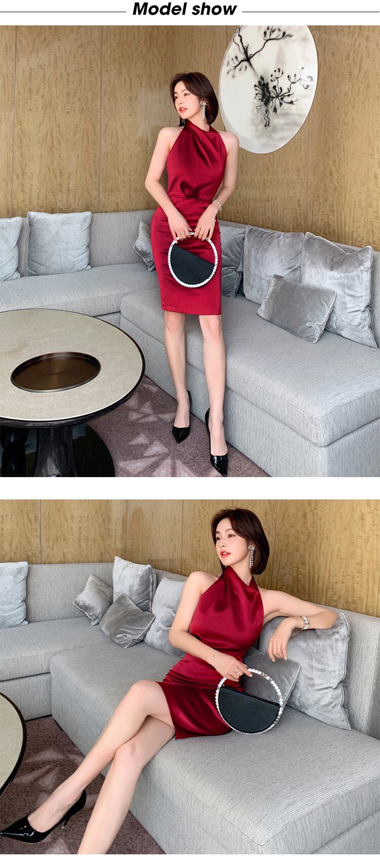 レトロ サマー 夏物 ドレス サテン スリム MingJieBiHuo36261514863