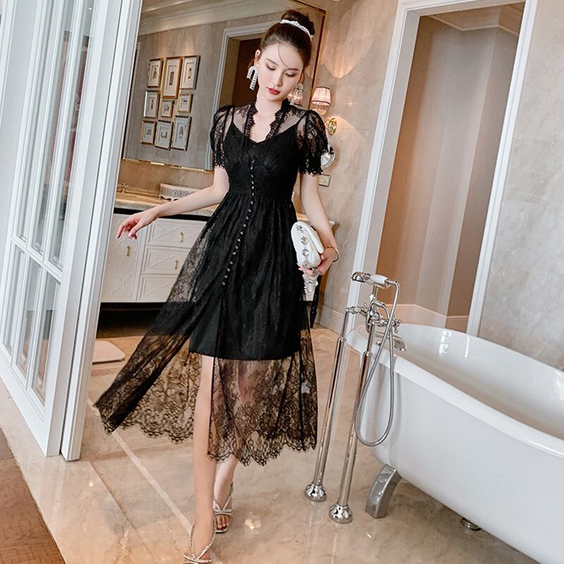 ショート ブラック レース 半袖 ハーフスリーブ ビーチ Vネック ビンテージ MingJieBiHuo23256902660