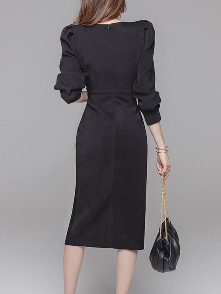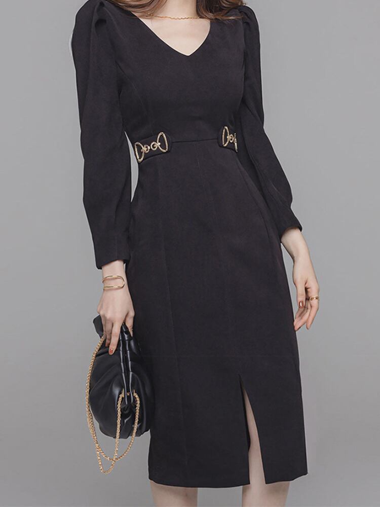 エレガント Vネック ソリッドカラー ビンテージ MingJieBiHuo46271202029