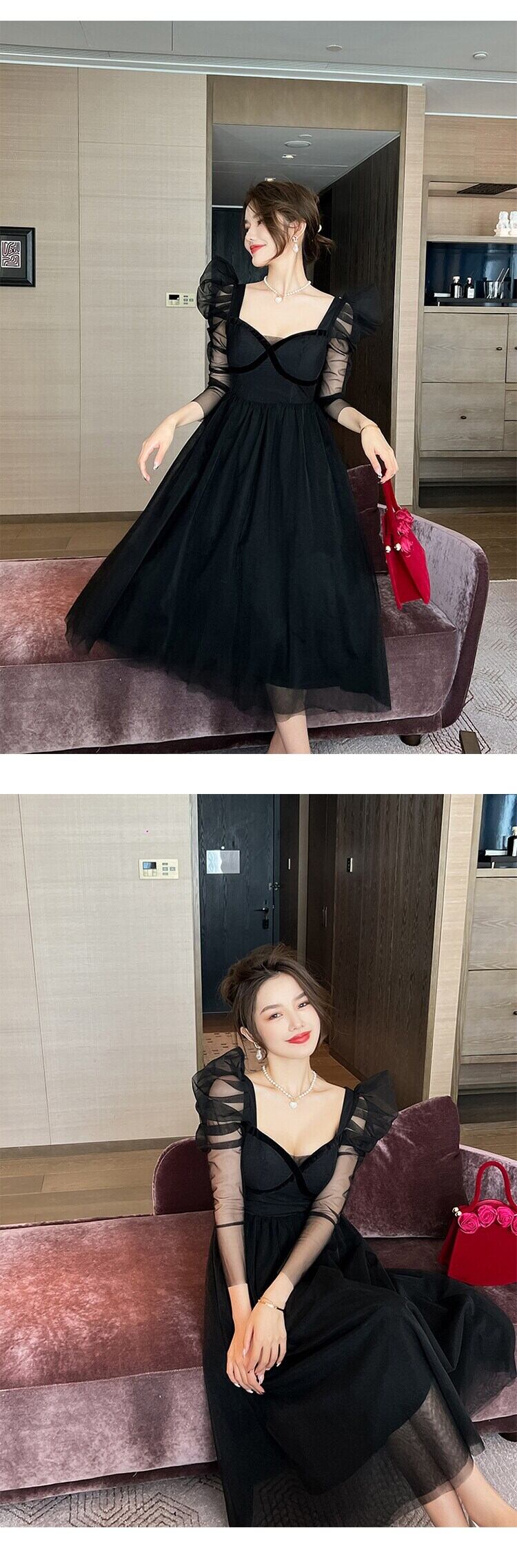 ブラック スプリング 春物 オータム 秋物 メッシュ ドレス スリム MingJieBiHuo20759990652