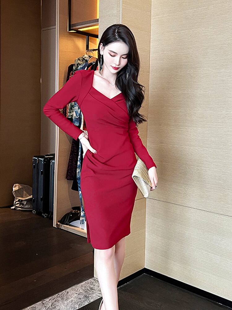 ストリート ドレス Vネック スリム MingJieBiHuo36607234306