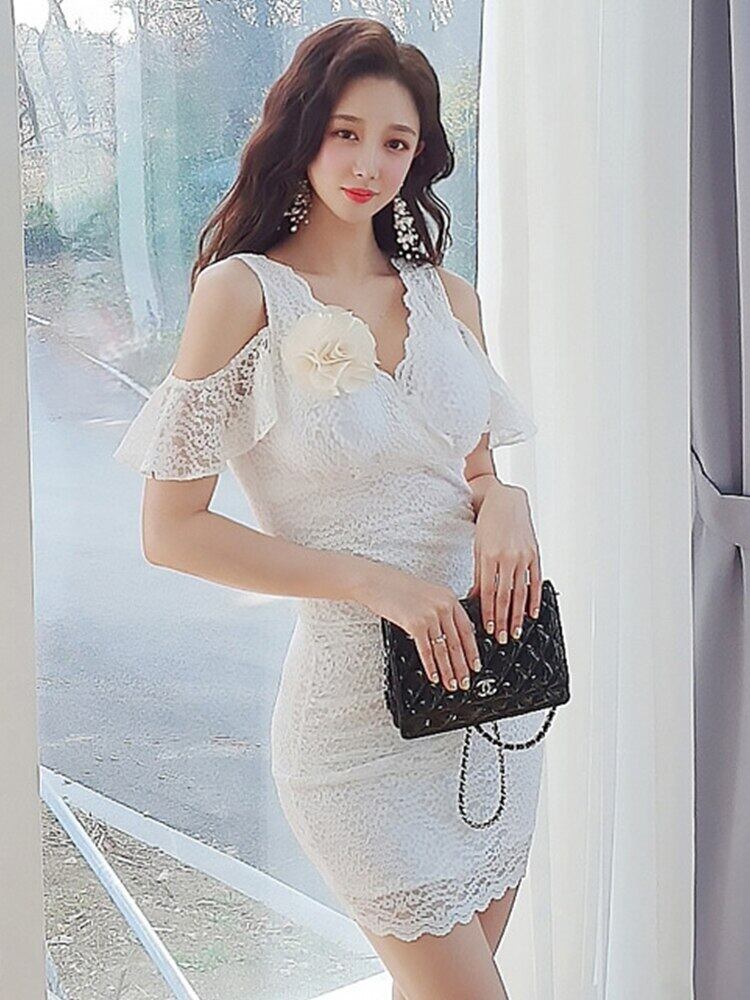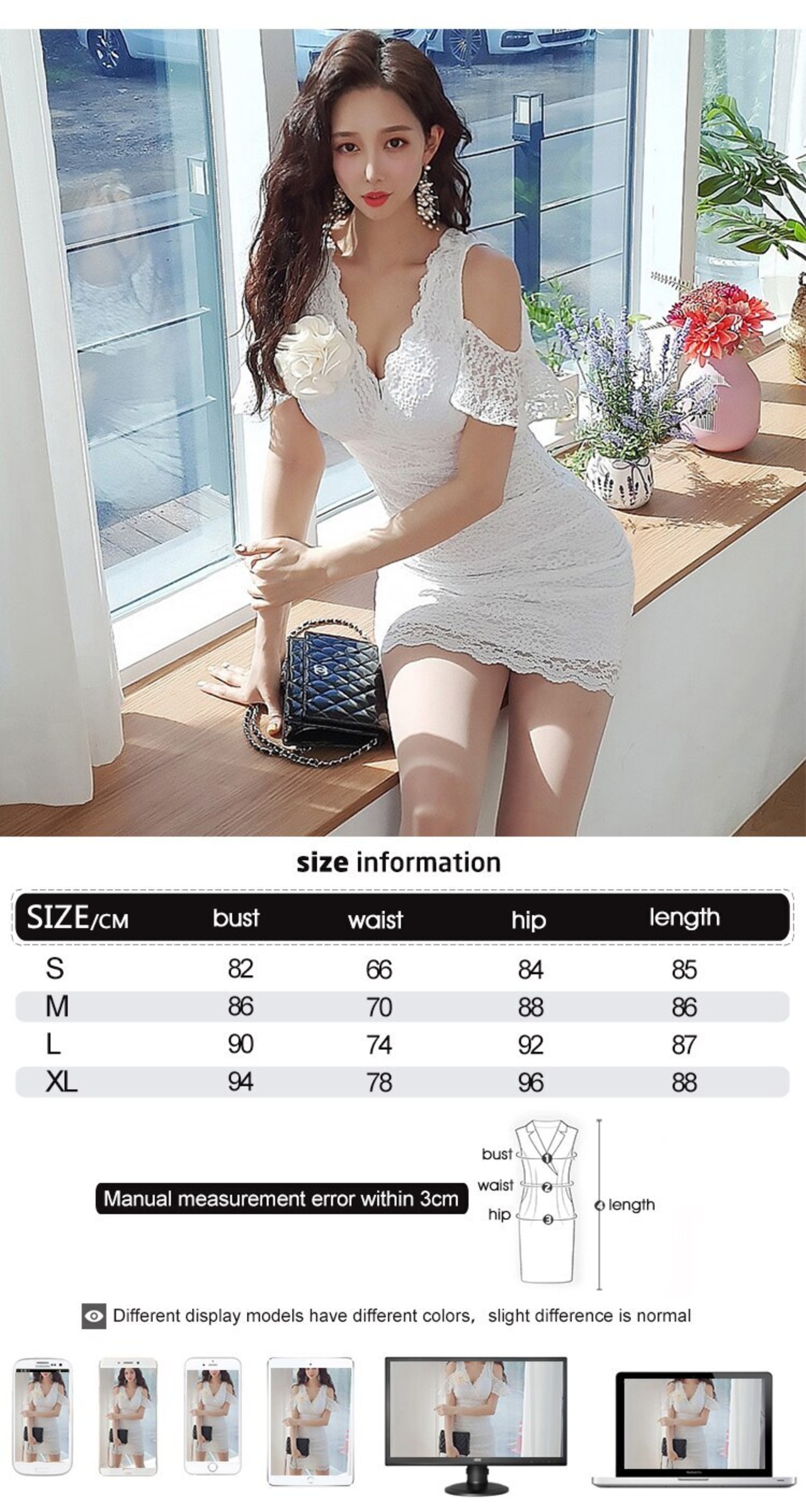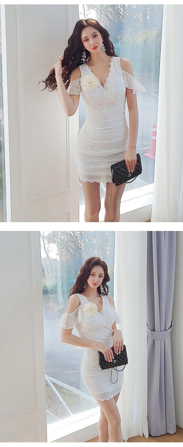 ショート ミニ レース サマー 夏物 ドレス Vネック スリム MingJieBiHuo80968507507
