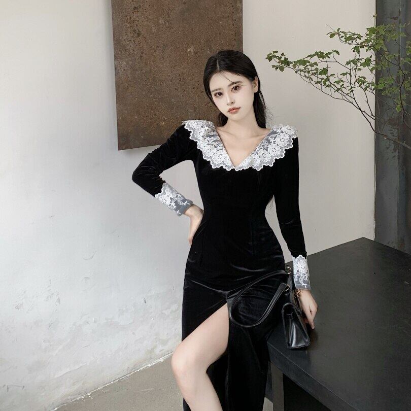 ブラック レース オータム 秋物 Vネック ビンテージ WWJULY85138281324