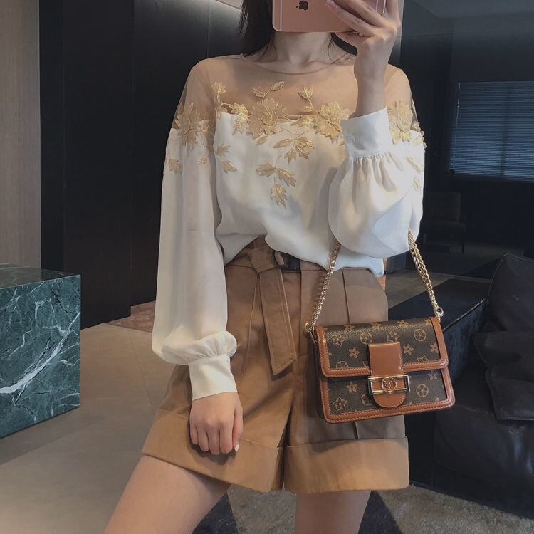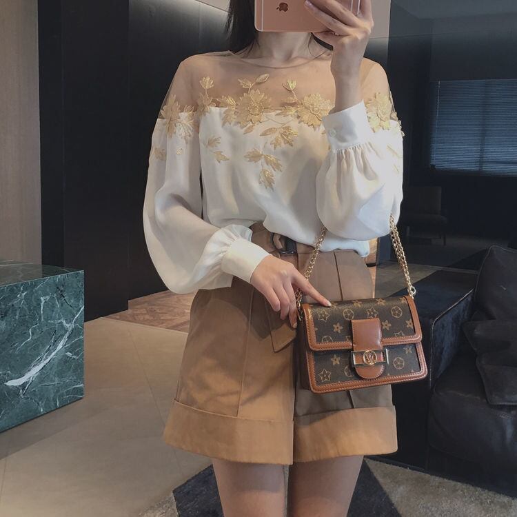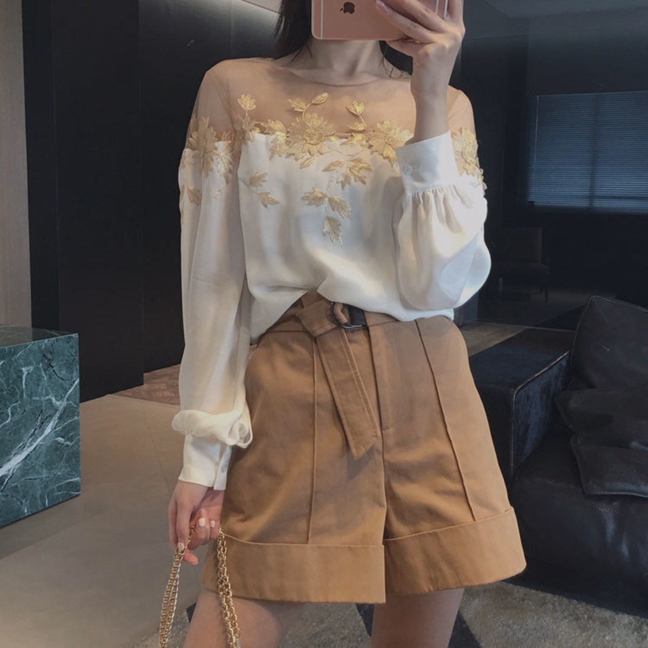 ロング レース 長袖 シャツ ブラウス 刺繍 サマー 夏物 花柄 Oネック ビンテージ WWJULY14746035725